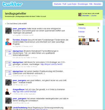 Wer schauen will, was die wenigen, der neuen Technik aufgeschlossenen Abgeordneten so zwitschern, der kann ja mal bei meiner Twitterliste "Landtagsgetwitter" vorbeischauen.
