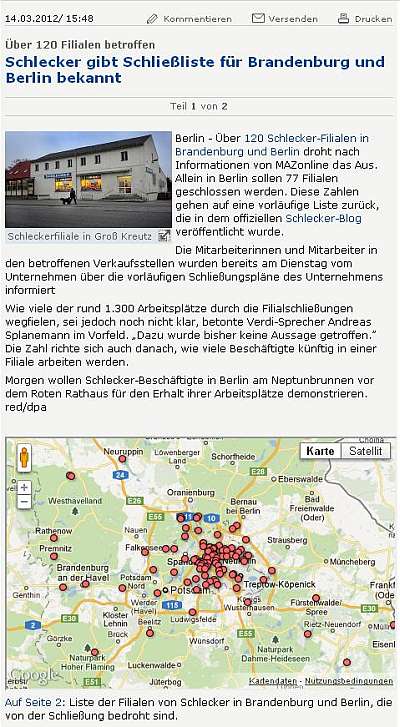 Was jetzt noch fehlt ist eine Liste von Schlecker mit allen Filialen bzw. denen, die erhalten bleiben. Dann wäre der Nutzwert gleich noch höher.