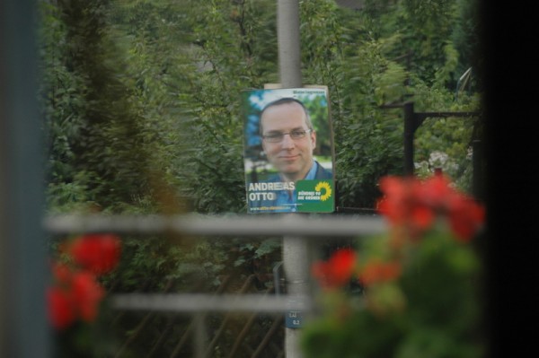An einer Stelle, wo ich mich frage, wen er außer uns (und unserem Haus) so erreichen will. Ich sage es mal so direkt heraus: Ich finde es ein bisschen aufdringlich. Wäre es wenigstens ein etwas originelleres Plakat geworden. Aber so ein Gesicht? Ick wees nich. Ich glaube, das beeinflusst meine Wahlentscheidung. Nicht.