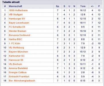 Wo alle ja gerade so über Krisen schreiben, auch ich, doch mal etwas Schönes, etwas Großes, etwas, das Hoffnung macht - die Bundesliga-Tabelle: