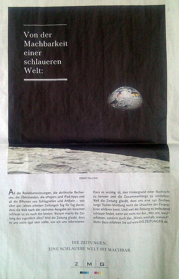 Die Zeitungen in Deutschland buhlen um Leser. Angesichts sinkender Auflagen sicher keine schlechte Idee. Aktuell werden aus diesem Grund Image-Anzeigen geschaltet unter dem Motto "Die Zeitungen. Eine schlauere Welt ist machbar".