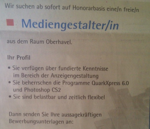 Entweder die Stellenanzeige wird so unverändert seit ein paar Jahren immer mal wieder veröffentlicht - oder da hat wer das eine oder andere Software-Update übersprungen.